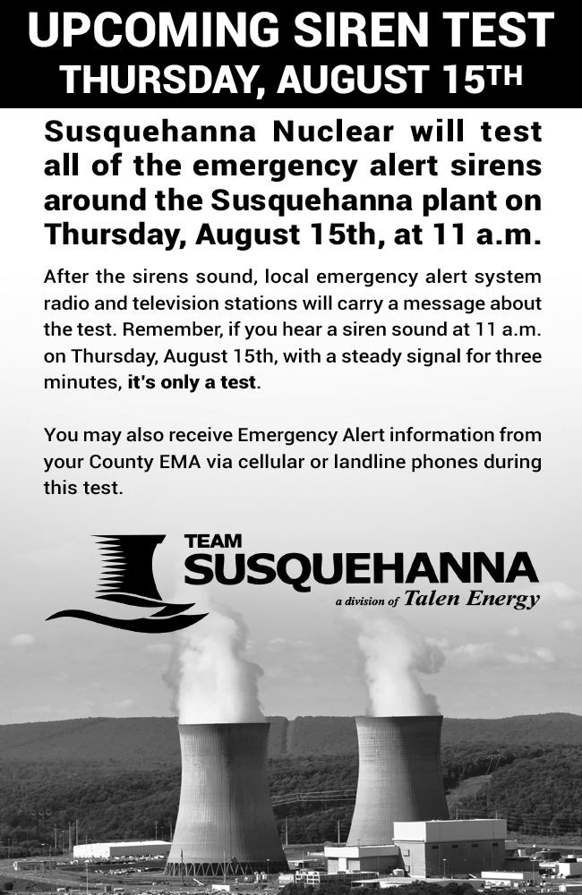 Susquehanna Nuclear to Test Emergency Notification Sirens on Thursday August 15