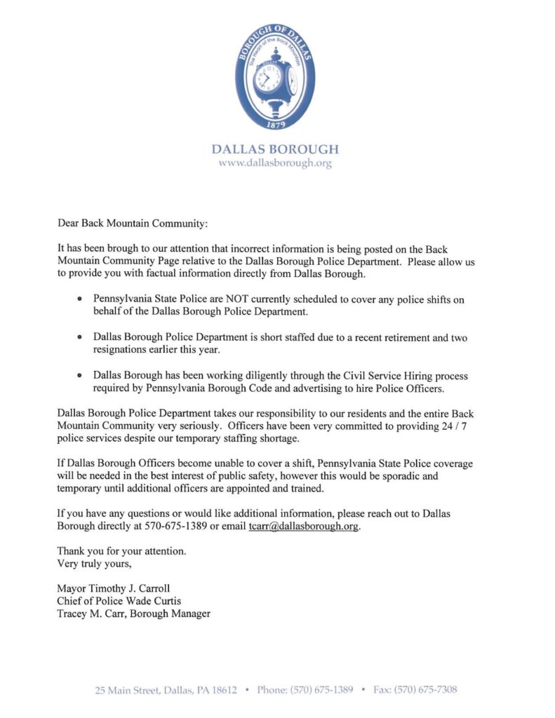 Dallas Borough Council Meeting Minutes