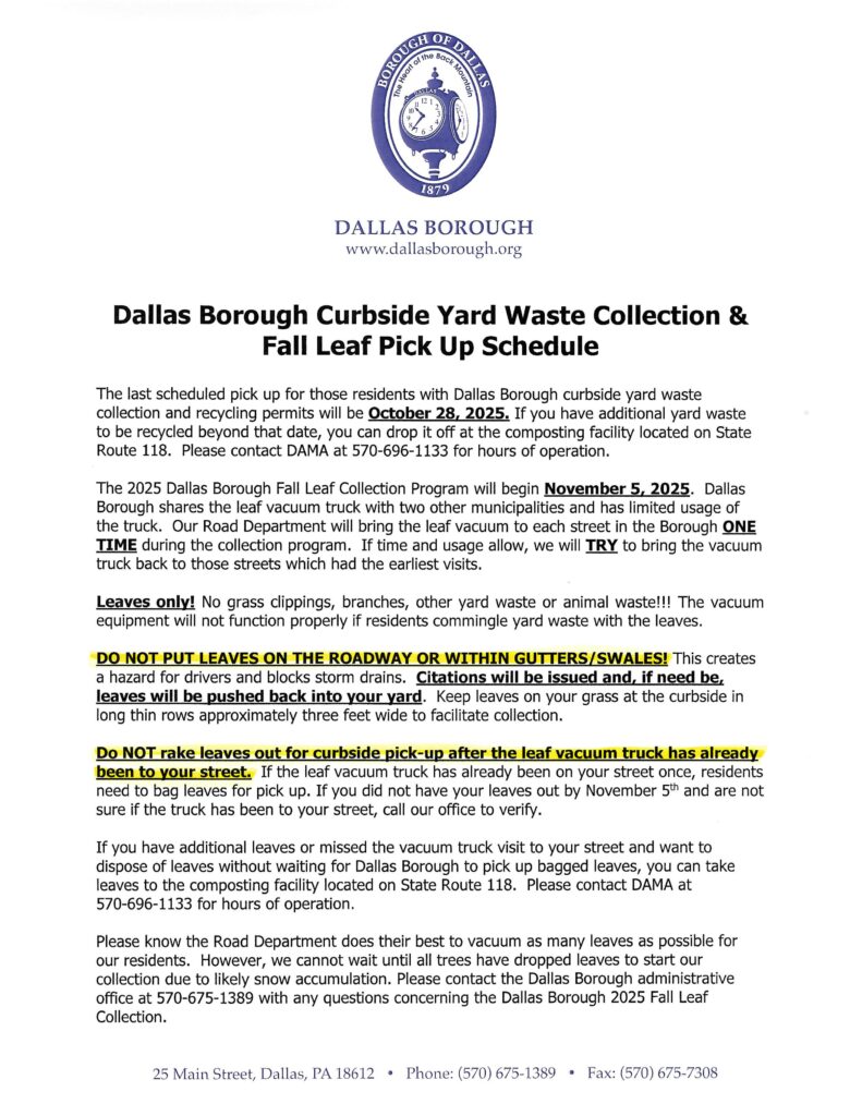 Yard waste and leaf pick up info